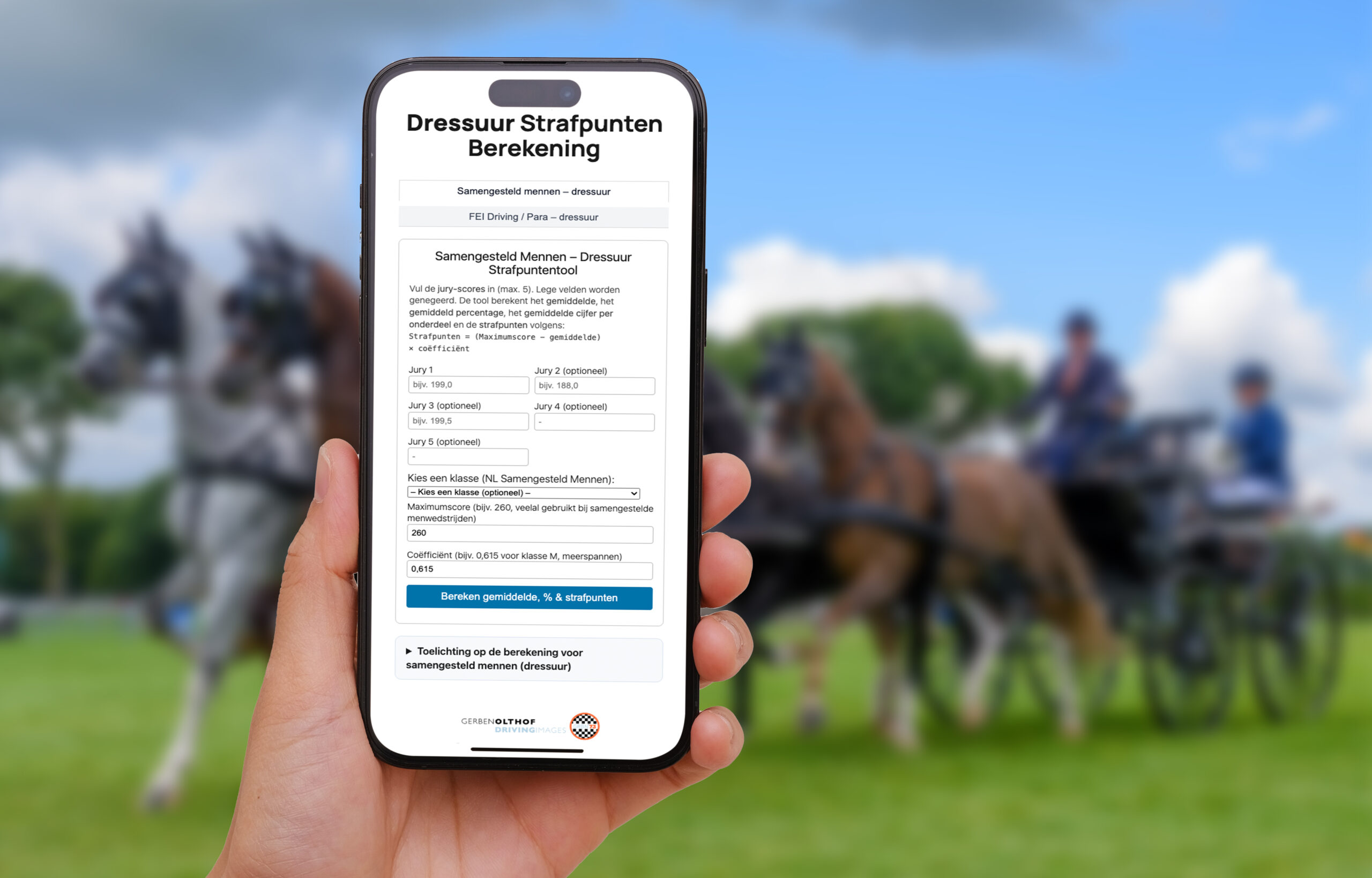 Iedere fanatieke menner zal dat wel eens hebben ondervonden; een dressuurproef van het samengesteld mennen rijden,maar geen strafpunten berekend krijgen. Wat nu? Hoe reken je dat uit? Dat zelfde probleem hadden wij ook.